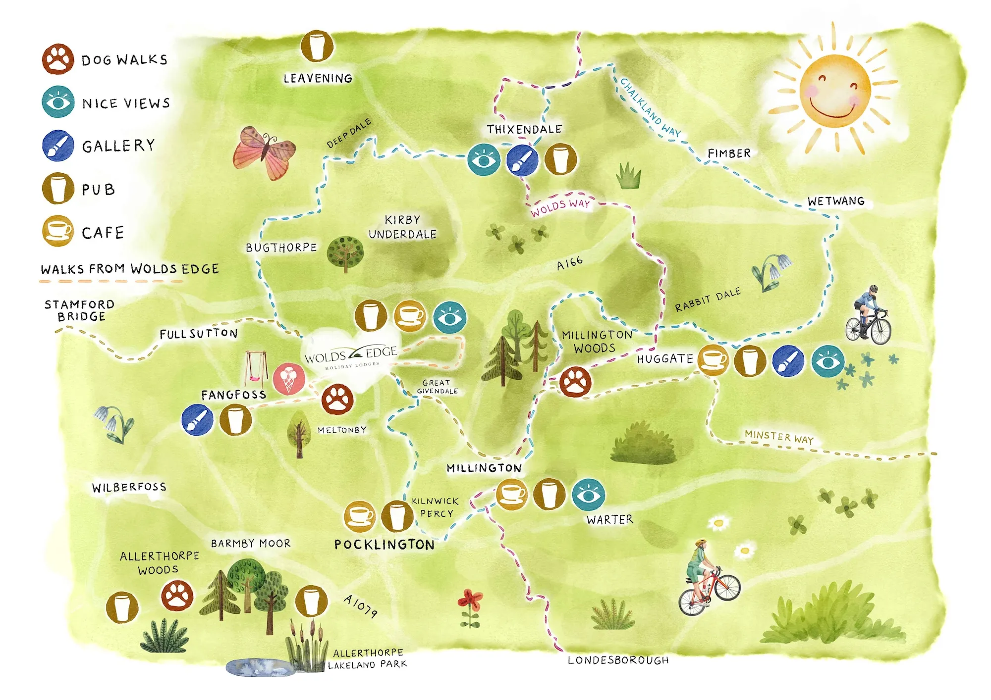 There’s plenty to do locally—enjoy the calm of Burnby Gardens or a canal boat ride in Pocklington, or for adventure try water sports at Allerthorpe Lake or a glider flight over the Yorkshire Wolds.